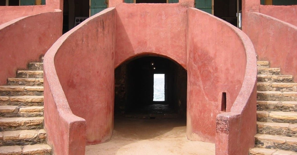 Visible au loin, la célèbre “Porte du Voyage sans Retour” symbolise le dernier passage des esclaves avant leur départ irréversible vers un destin inconnu. Elle servait à transférer les esclaves depuis la maison jusqu’aux bateaux à l’aide d’un plancher qui les reliait.